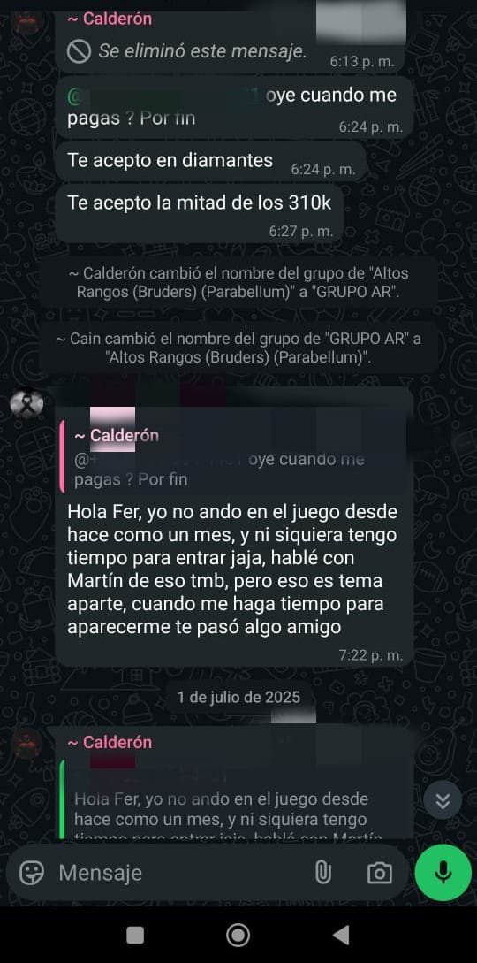 « on: Agosto 17, 2025, 09:17:27 pm »Yo diría que le envié un último MP o mensajes al que te debe plata y ponerse de acuerdo en caso que no te pague ya te queda como experiencias DP y propia a no volver prestar. Fin del caso y sin tanto rodeo.