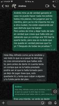 Cabe recalcar que yo no busco involucrar a nadie mas, ni pensaba llevar esto tan lejos porque no deja de ser un videojuego, pero viendo que la otra persona se tomo la molestia de crear un montón de evidencia falsa, no podía deja esto así, la culpa no lo dejo en paz en estos días y el solito se puso la soga al cuello.