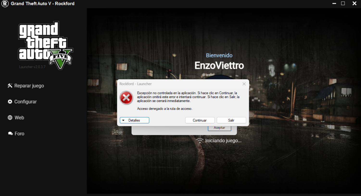Imposible entrar al juego (incluso Rockford)