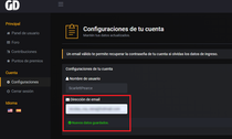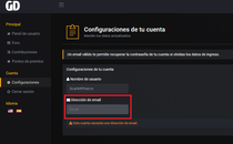 Una vez dentro de configuraciones, nos saldra un mensaje diciendo Esta cuenta necesita una dirección de email., y arriba de este mensaje nos saldrá el nombre de usuario y dirección de email