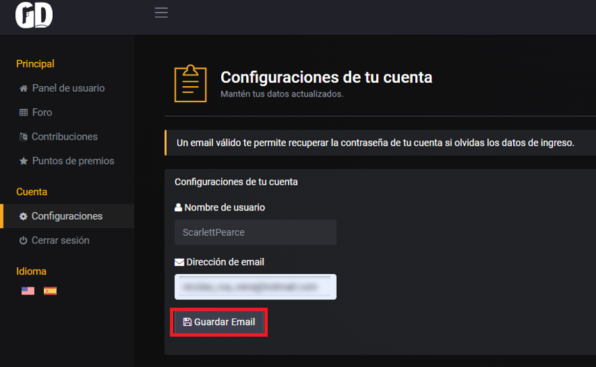 Pondremos un correo electrónico que nosotros usemos y le daremos en Guardar Email