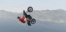 No sirve, no por algo tengo como 4 motos, lo único que te pueda servir es el giro 360° o en el monte chilliad hacer algo similar pero te vas morir (posiblemente a menos que sepas amortiguar el golpe y sobreviva), a menos en el mando ps5 no he visto algo que vuela, con otro mando ni idea.