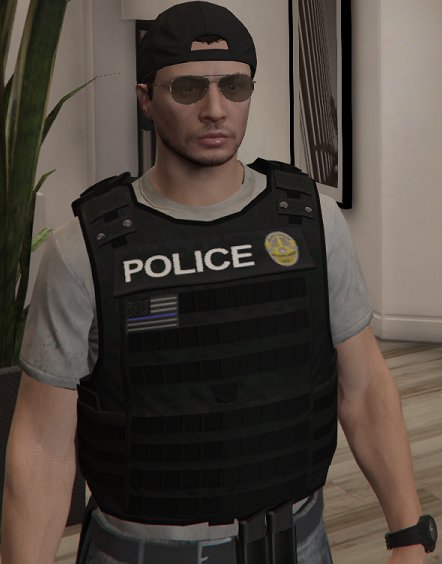 Ya hay chalecos tacticos/kevlar para la policia, no mas tienen que añadir la prenda al solicitar el chaleco en la armeria, asi como se ve en mi foto del foro, hay varios tipos, pero solo moderadores pueden añadirte