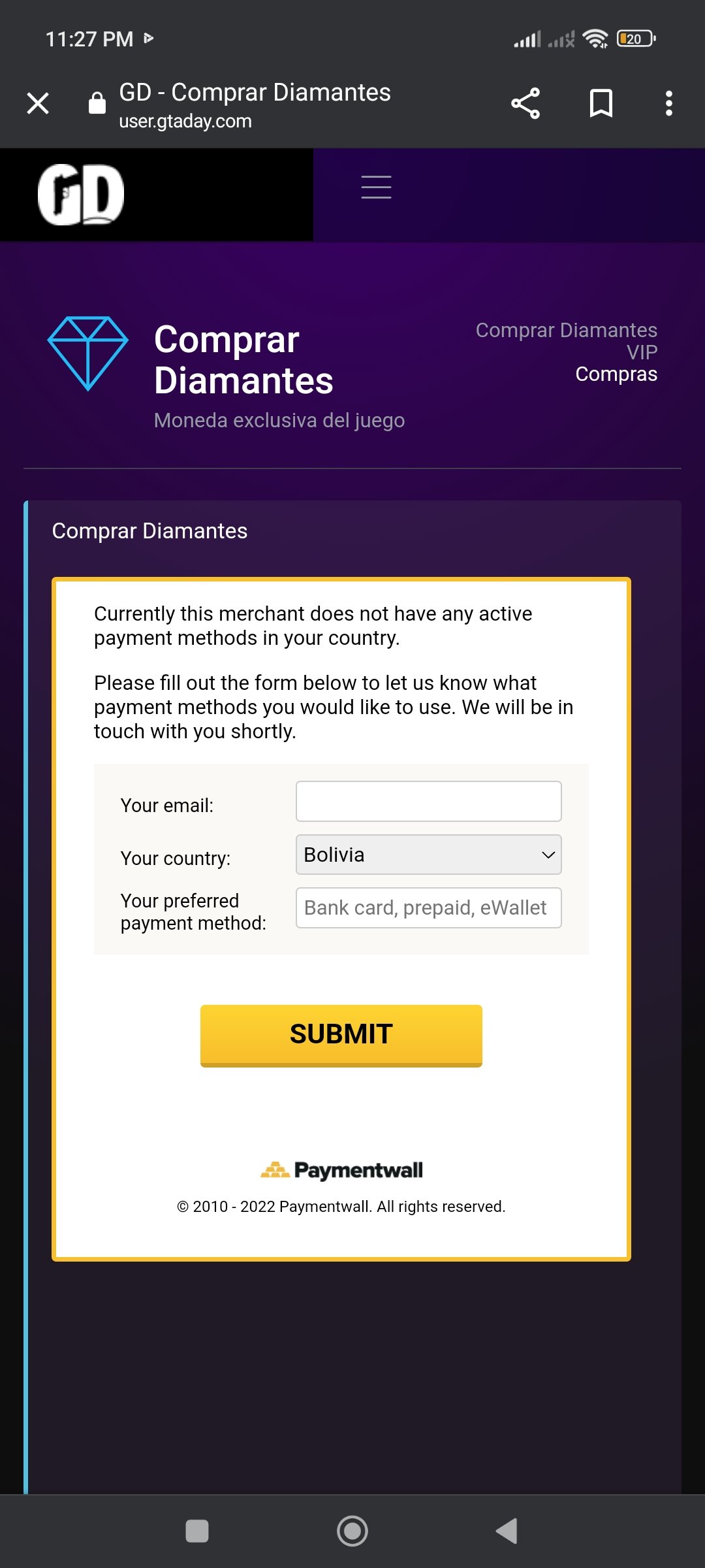 Julio no es obligación que recargues diamantes, si tu país no tiene métodos disponibles, entonces Paypal es la única alternativa, si no tienes tarjeta de créditos o débitos no podrás entonces recargar diamantes, te tocará optar por el otro método que es comprarlo dentro del personaje en la joyería y se lo compra a los demás, no queda de otra.