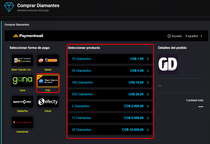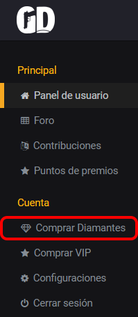 Primero nos dirigimos a nuestro Panel de Usuario una vez allí le daremos a la opción Comprar Diamantes