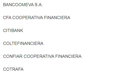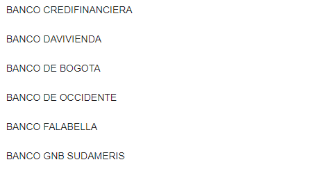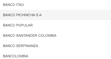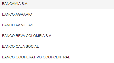 En esta casilla nos da a elegir con que banco deseamos pagar, tenemos una gran variedad para poder realizar el pago.