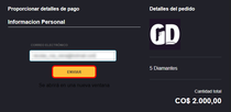 Esto para mandar la factura del pago al rato que hagamos el pago, por ende poner un correo verdadero para tener la factura por si tenemos algun problema con nuestros diamantes.