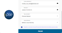 Ya puesto el correo y le dimos en Enviar, nos llevara a la pagina de PSE en la cual debemos poner nuestros datos personales para proseguir con el pago.