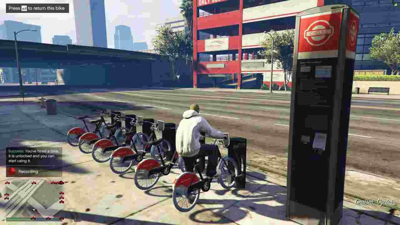 Un ejemplo, que te quedes varado sin vehiculo digamos en el hospital de Sandy Shores, y en lugar de apretar el F3 y aparecer un vehiculo, vayamos al lugar de renta de bicicletas mas cercano que tengamos.