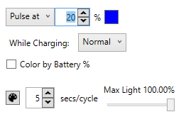 Al lado del porcentaje pueden elegir el color a su gusto para que haga la función de iluminarse de dicho color cuando llegue al porcentaje de batería indicado.