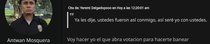 En estas dos imágenes por ejemplo, sin yo haberle faltado en ningún momento el respeto con palabras, el me falta el respeto en dos ocasiones. Si, es normal estará cansado de que me ponga así, pero no es necesario faltar el respeto.
