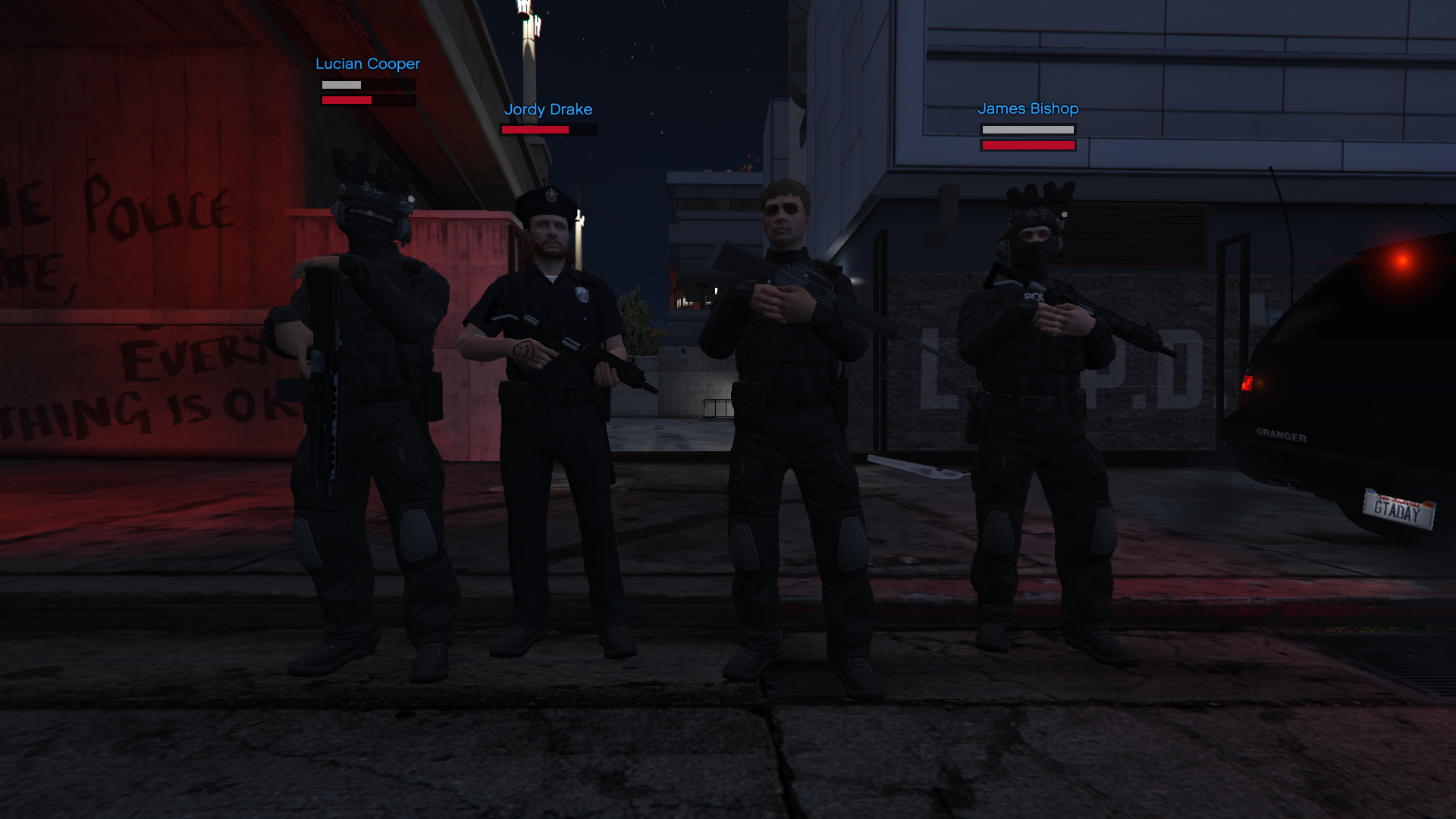 Unidad Centauro operativa desde del Departamento de Policía de Los Santos y conforma el Oficial Synthwave.