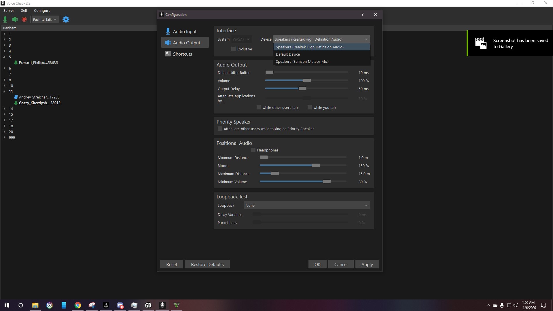Para los que no les funciona el Mic ni el Audio de los otros jugadores al entrar, deben seleccionar sus dispositivos de entrada y salida de audio en el programa de voice chat, le dan al boton que dice "Configure" en la esquina